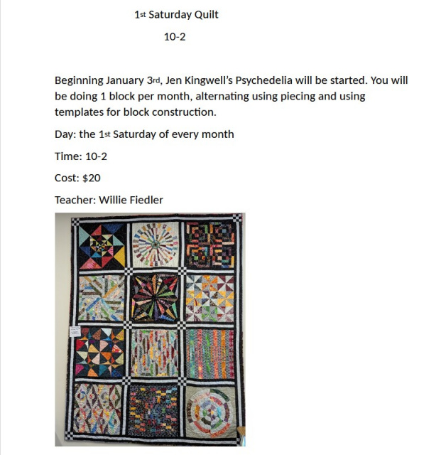 Most of our classes are open sew. You will need to bring a sewing machine, your project and tools. We have mats, rulers and pressing equipment available. Please call store at 508-362-8700 for details and to check availability.