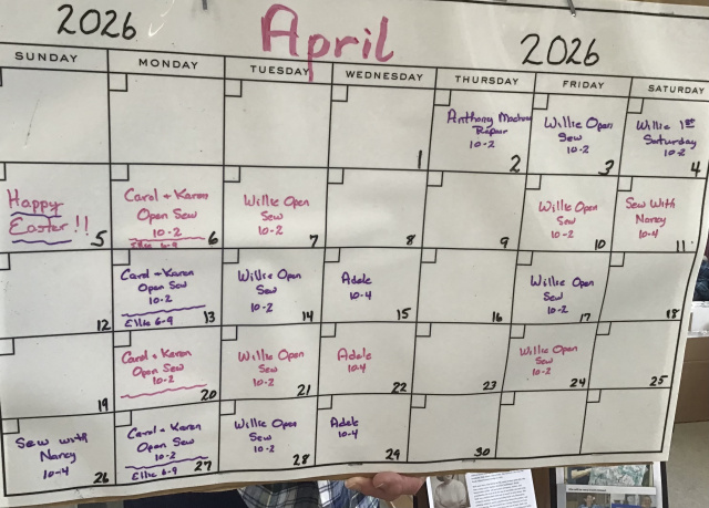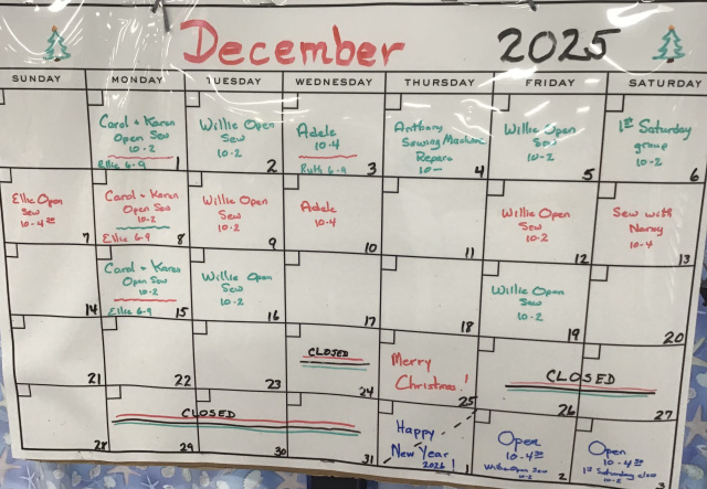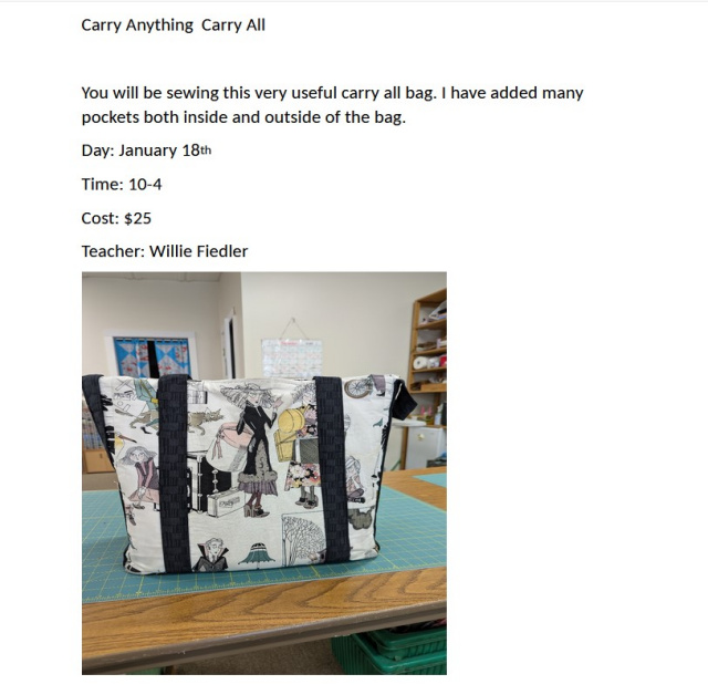 Most of our classes are open sew. You will need to bring a sewing machine, your project and tools. We have mats, rulers and pressing equipment available. Please call store at 508-362-8700 for details and to check availability.