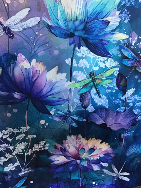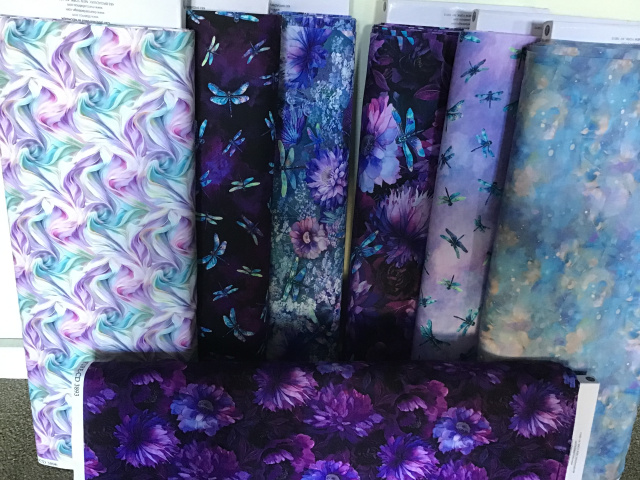 New fabric collection just in - Dragonflies - panel and coordinates-beautiful shades of purples, blues, greens, lavender, pink.